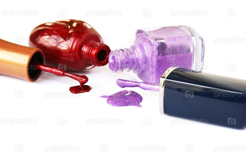Разлитый лак для ногтей на белом фоне