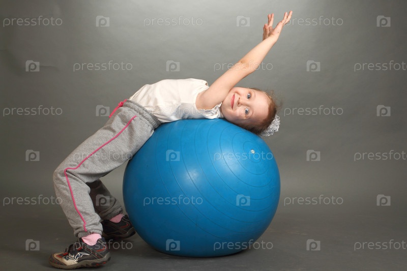 Маленькая девочка с синим фитболом