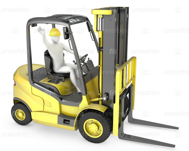 Человечек на погрузчике, изолировано на белом фоне
