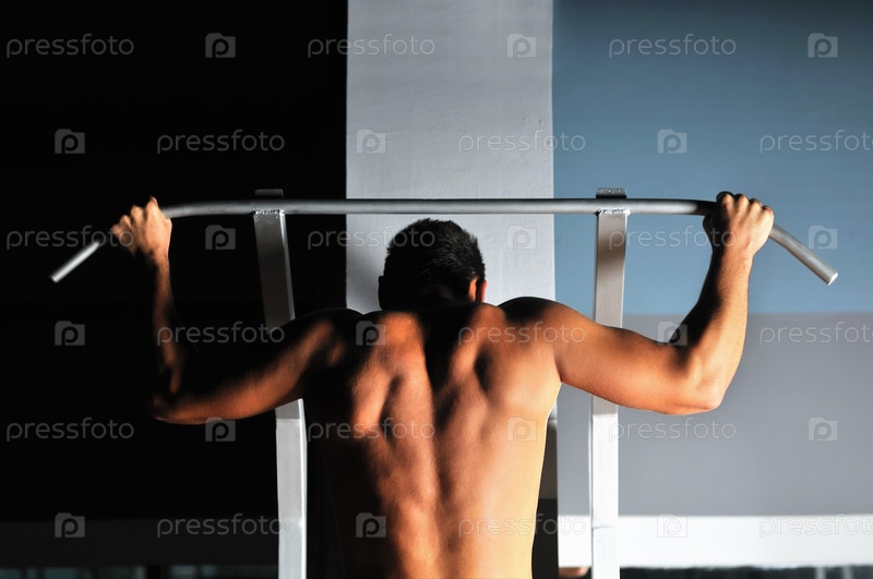 Молодой человек подтягивается на турнике