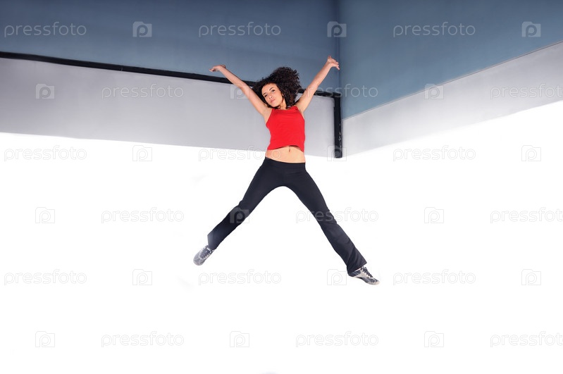 Девушка прыгает в тренажерном зале