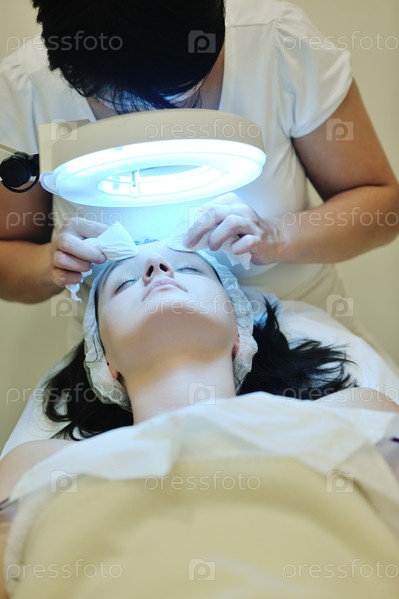 Женщина осуществляет уход за лицом в салоне красоты
