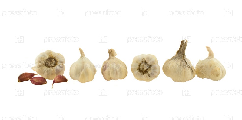 Главы чеснока изолированы на белом фоне