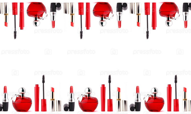 Комплект косметики для макияжа на белом фоне