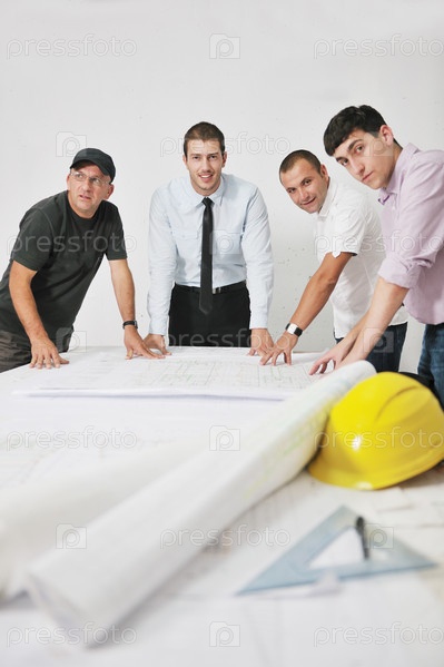 Группа архитекторов работают с документами