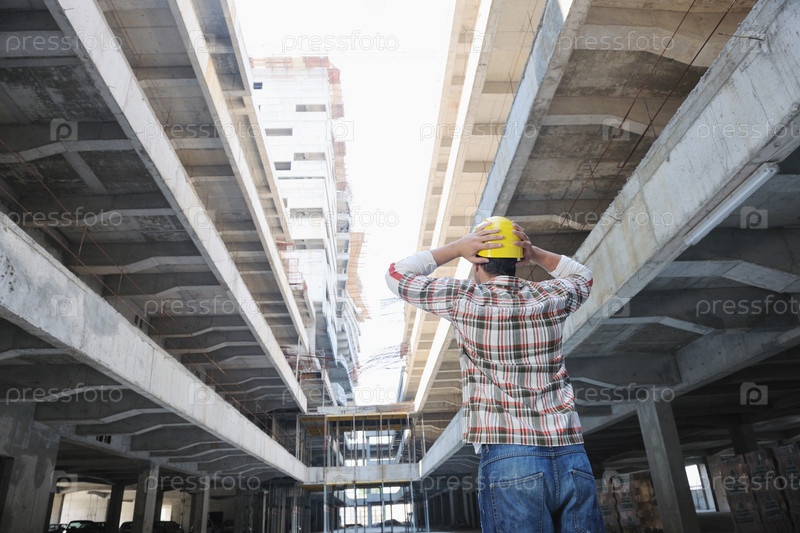 Молодой строитель на стройплощадке