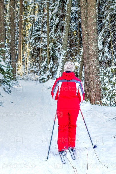 Катание на лыжах в лесу