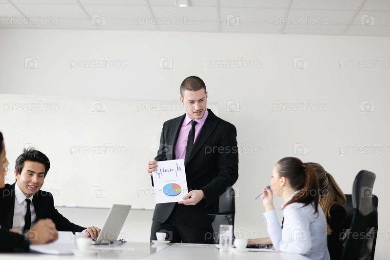 Группа молодых деловых людей обсуждает рабочие вопросы