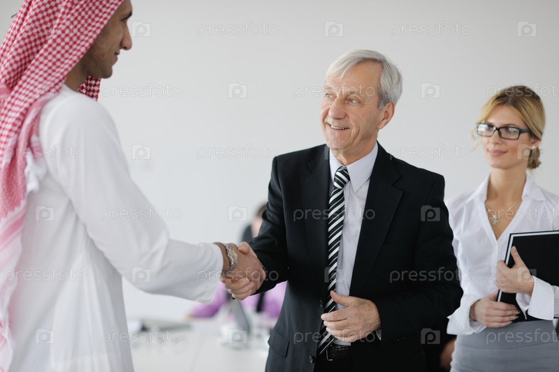 Молодой арабский бизнесмен на деловой встрече с партнерами