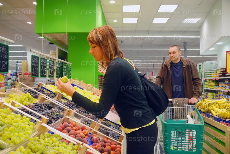 Молодая счастливая пара в супермаркете