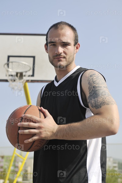 Баскетболист с мячом на открытом воздухе