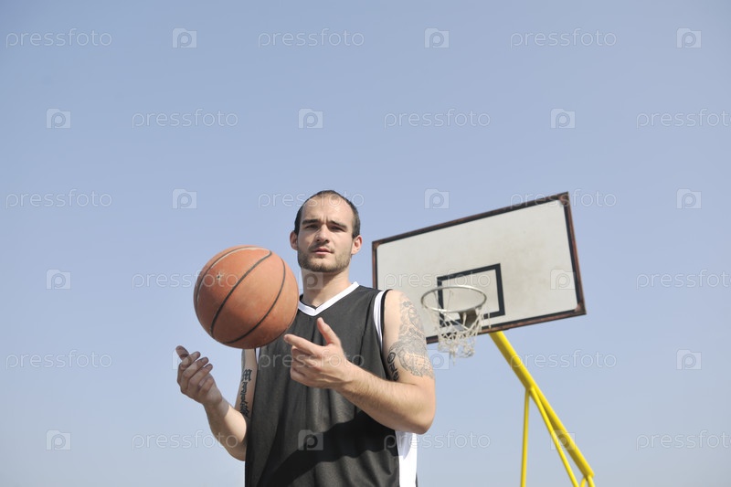 Баскетболист с мячом на открытом воздухе