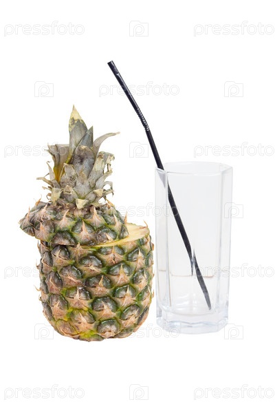 Нарезки ананаса и пустая стеклянная трубка, изолированные на белом фоне