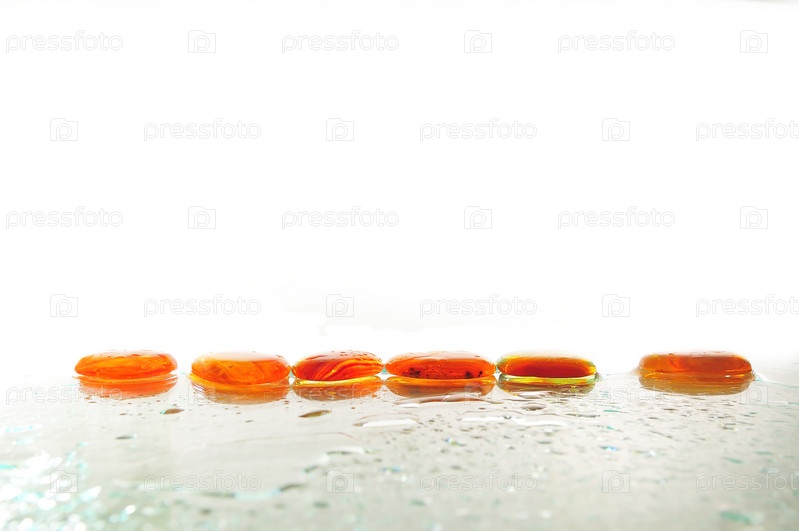 Влажные янтарные камни дзен на белом фоне