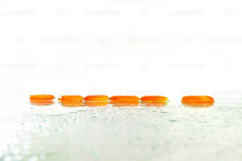 Влажные янтарные камни дзен на белом фоне