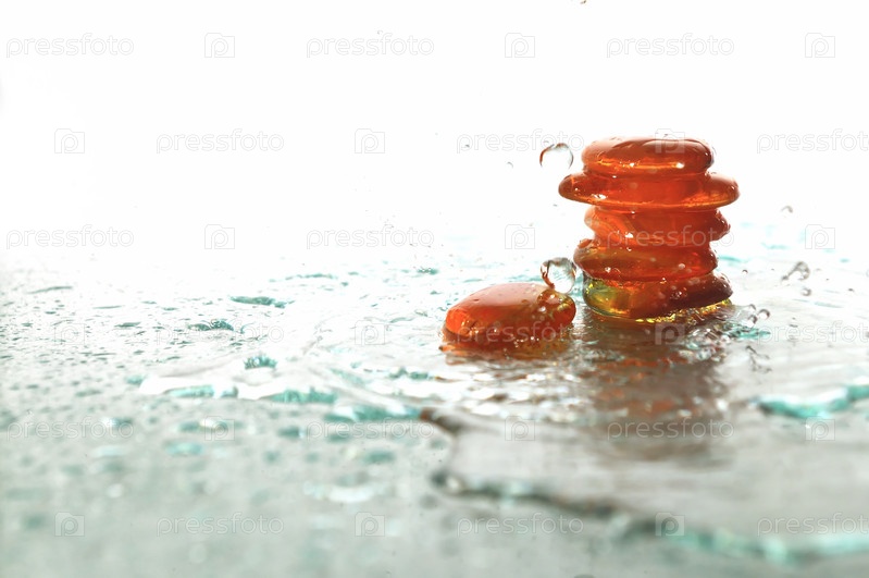 Влажные янтарные камни дзен на белом фоне
