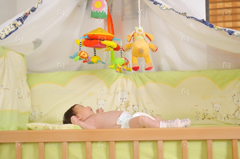 Маленький ребенок лежит в кроватке