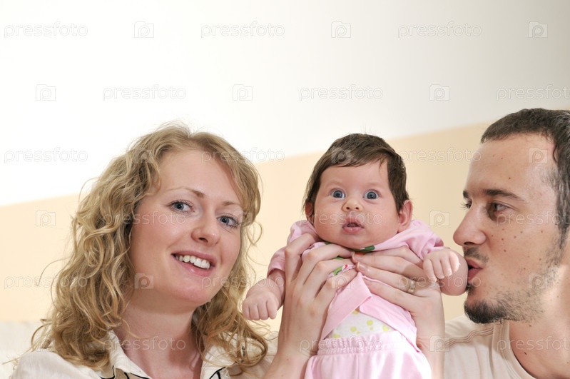 Счастливая молодая пара со своим маленьким ребенком