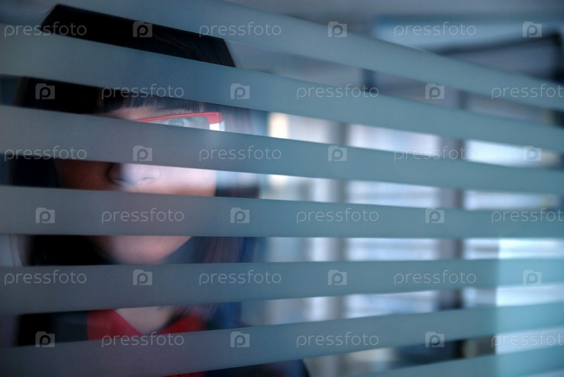 Портрет молодого предпринимателя через кабинетные жалюзи