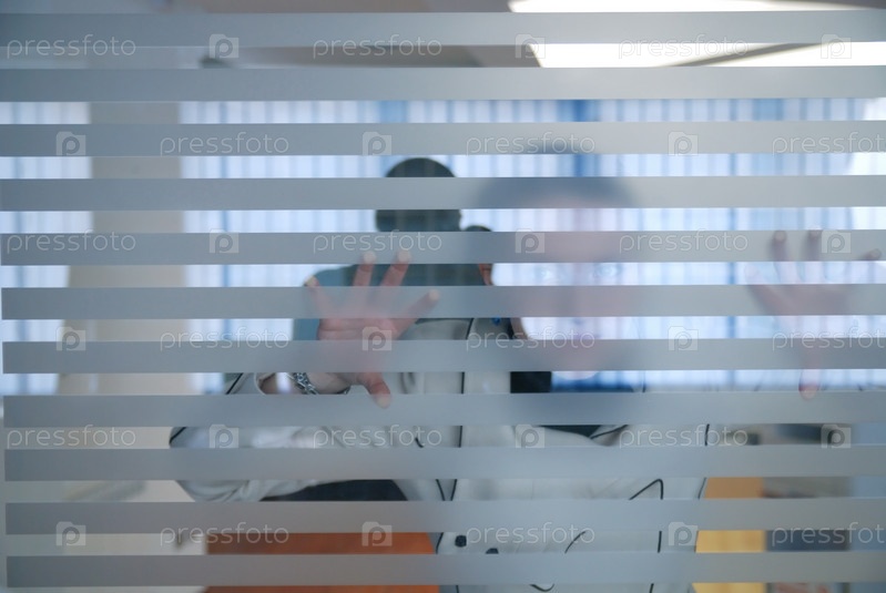 Портрет молодого предпринимателя через кабинетные жалюзи