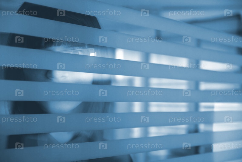 Портрет молодого предпринимателя через кабинетные жалюзи