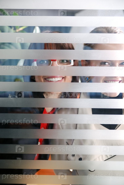 Портрет двух женщин через кабинетные жалюзи