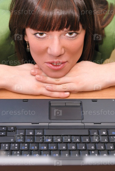 Привлекательная молодая женщина за ноутбуком в офисе