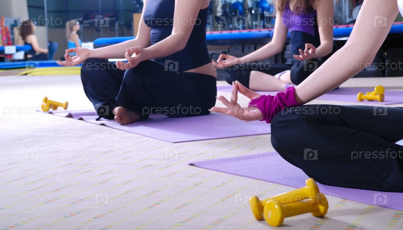 Красивые девушки занимаются йогой в фитнес-клубе