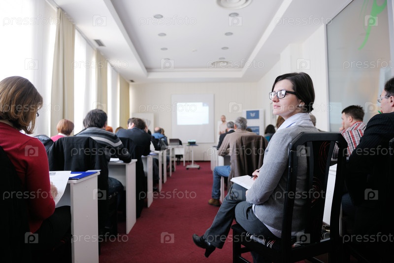 Группа деловых людей на семинаре в конференц-зале