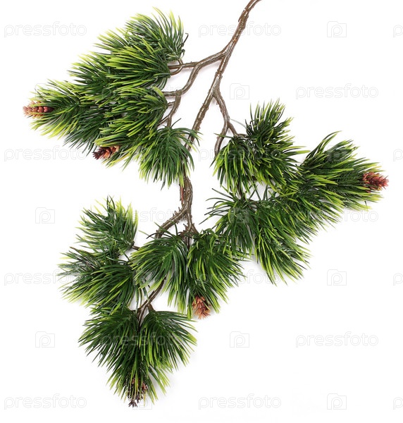Фото искусственных ветвей рождественской елки на белом фоне
