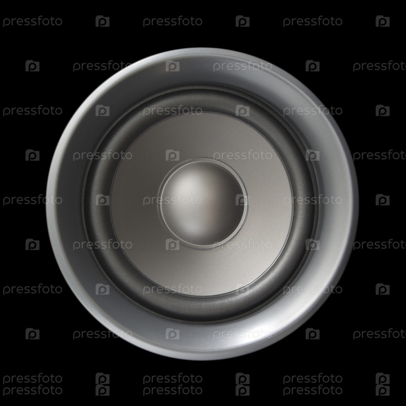 Большой серебряный басовый динамик, изолированный на черном