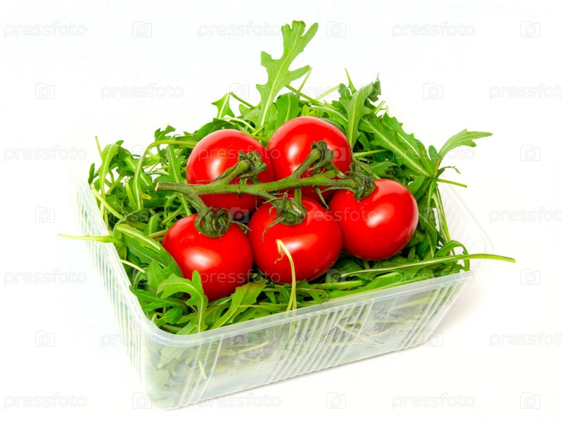 Помидоры и руккола, изолировано на белом фоне