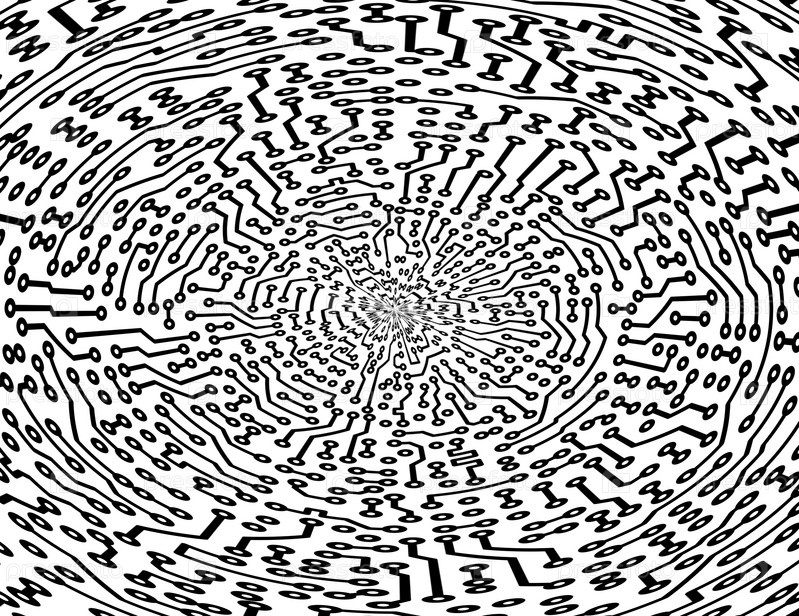 Гипнотическая абстракция - электронные черно-белые элементы, сходящиеся к центру