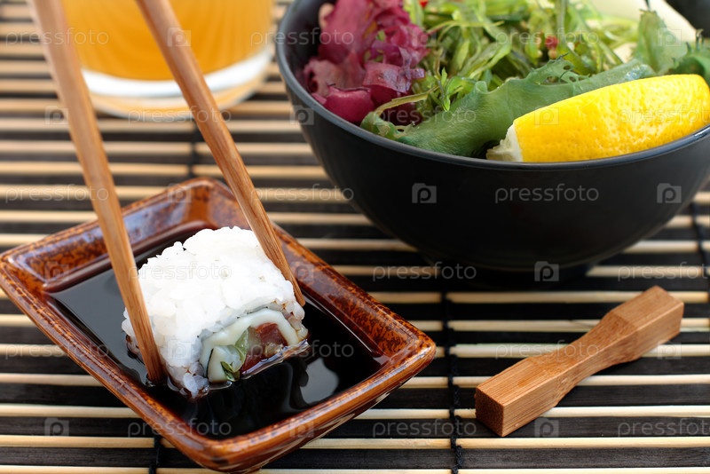 Суши и салат кейзо