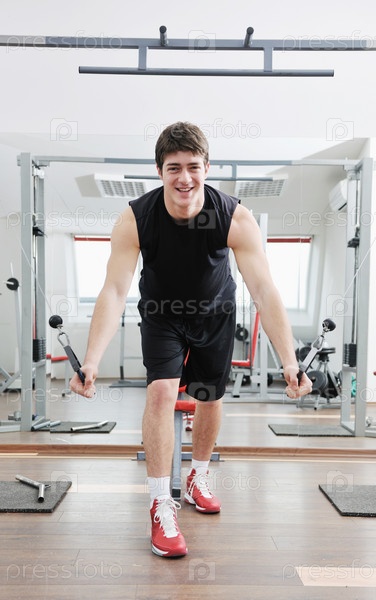 Молодой человек занимается в спортзале