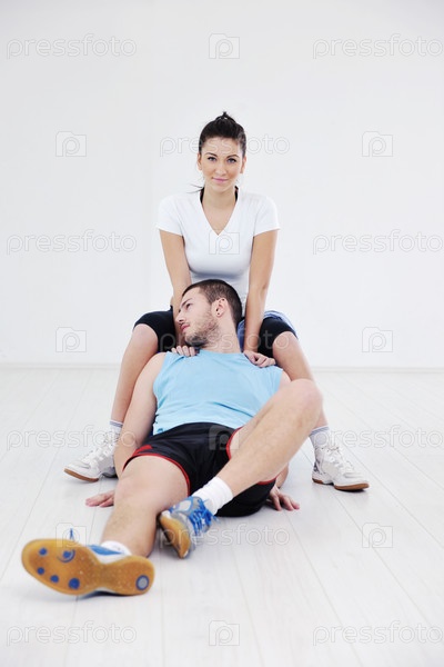 Счастливая молодая пара в спортивном клубе