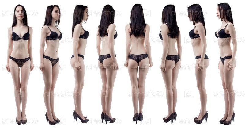 Стройная женщина в черном белье