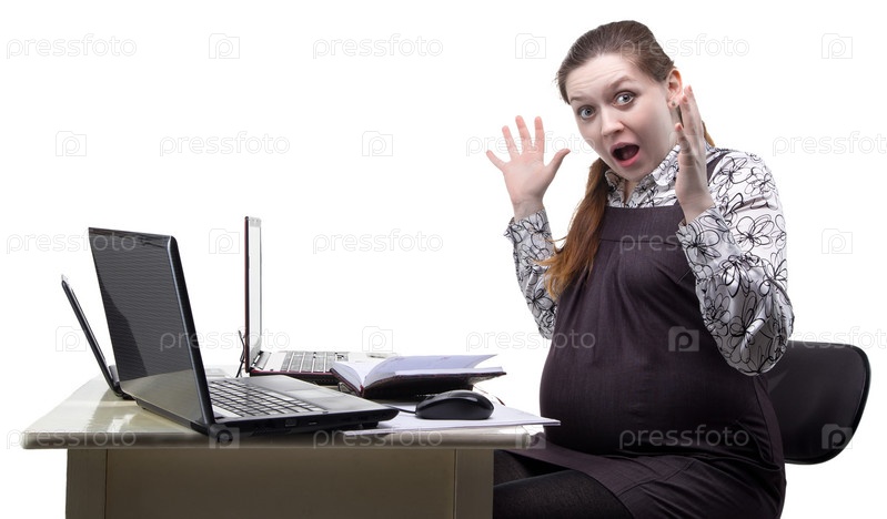 Удивленная беременная женщина на работе