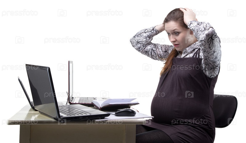 Удивленная беременная женщина на работе