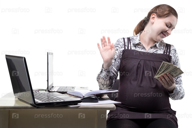 Беременная женщина с деньгами