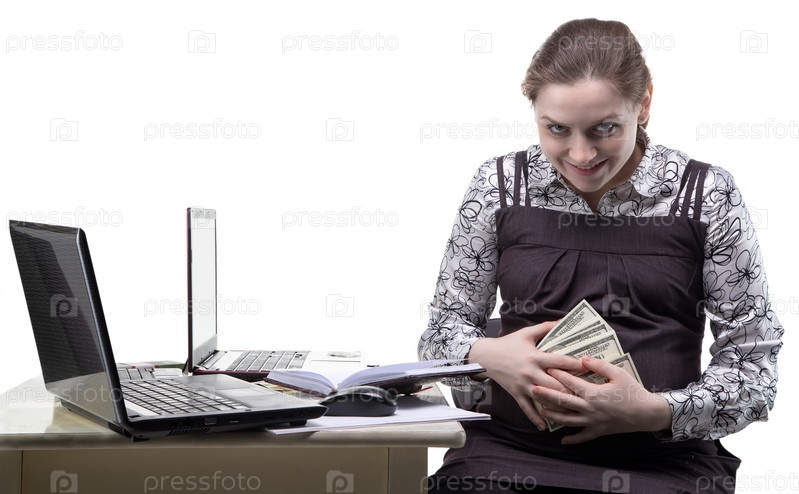 Жадная беременная женщина с долларами