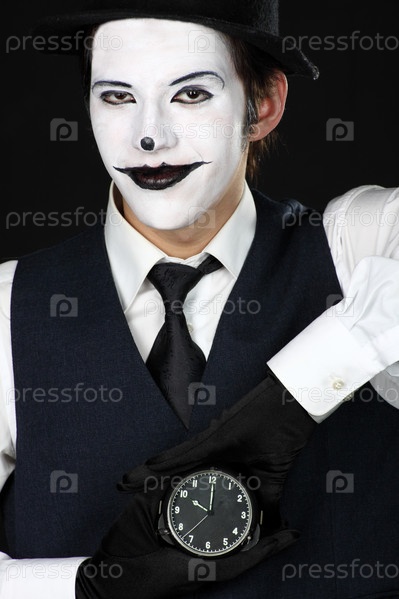 Портрет пантомима в костюме на черном фоне