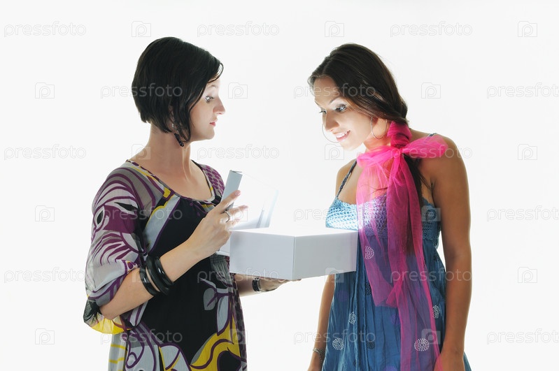Девушка дарит подарок своей подруге