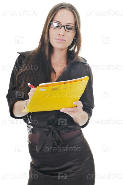 Портрет красивой деловой женщины с документами в руках