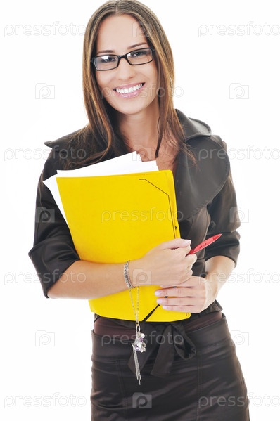 Портрет красивой деловой женщины с документами в руках