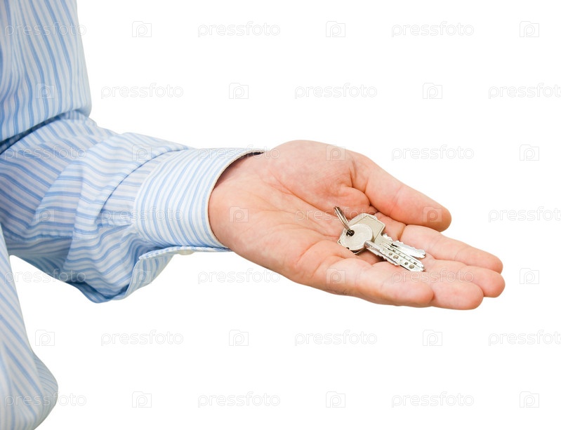 Ключи в мужской руке на белом фоне