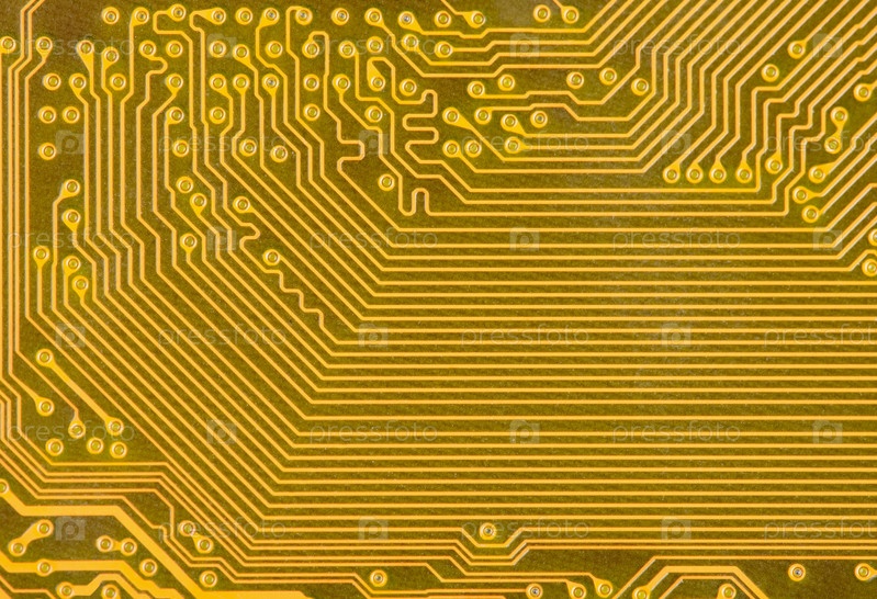 Абстракция из фрагмента материнской платы золотистого цвета