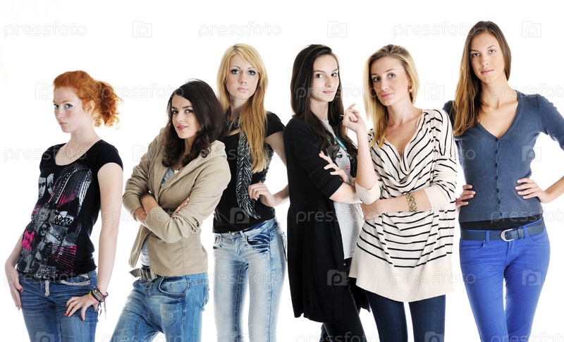 Группа счастливых девушек, изолированы на белом фоне