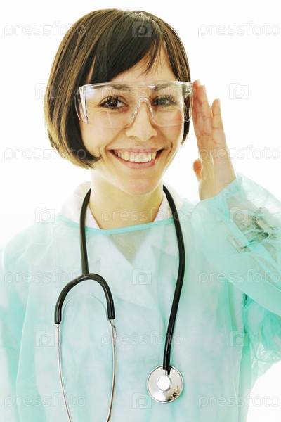 Молодая женщина-врач со стетоскопом, изолировано на белом фоне