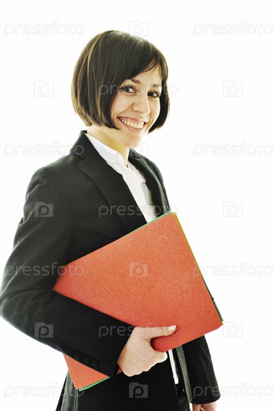 Счастливая молодая бизнес-леди, изолирована на белом фоне